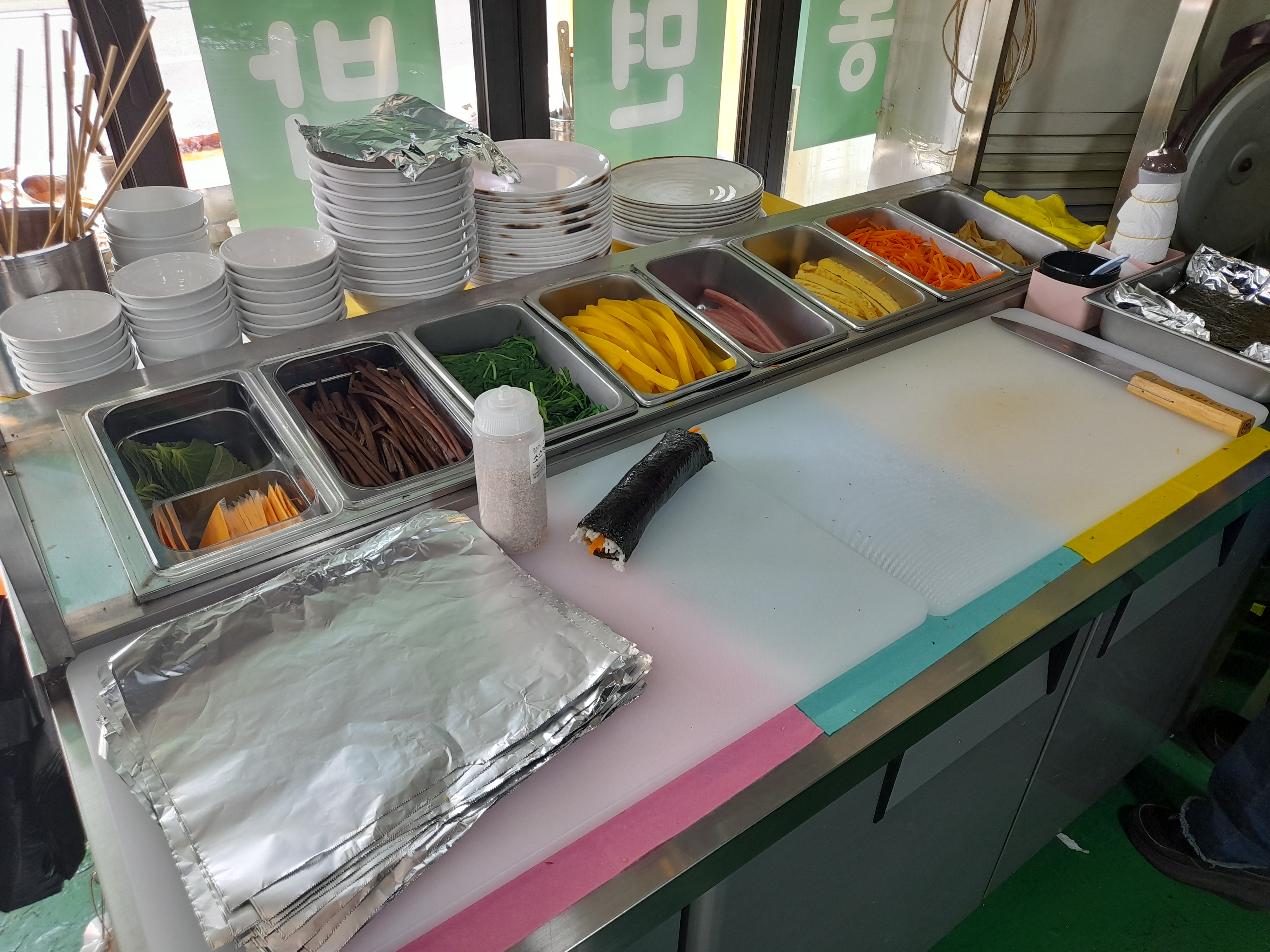 주문한 김밥과 라면이 나왔읍니다.김밥 옆구리 터진것 없이 아주 깔끔하게 잘라서 접이세 예쁘게 나왔읍니다.김밥속은 아주 알차게 가득차 있습니다.김밥 두꺼운거 보이시죠?김밥도 너무 질지않고 되지 않아서 먹기가 편하고 좋습니다.