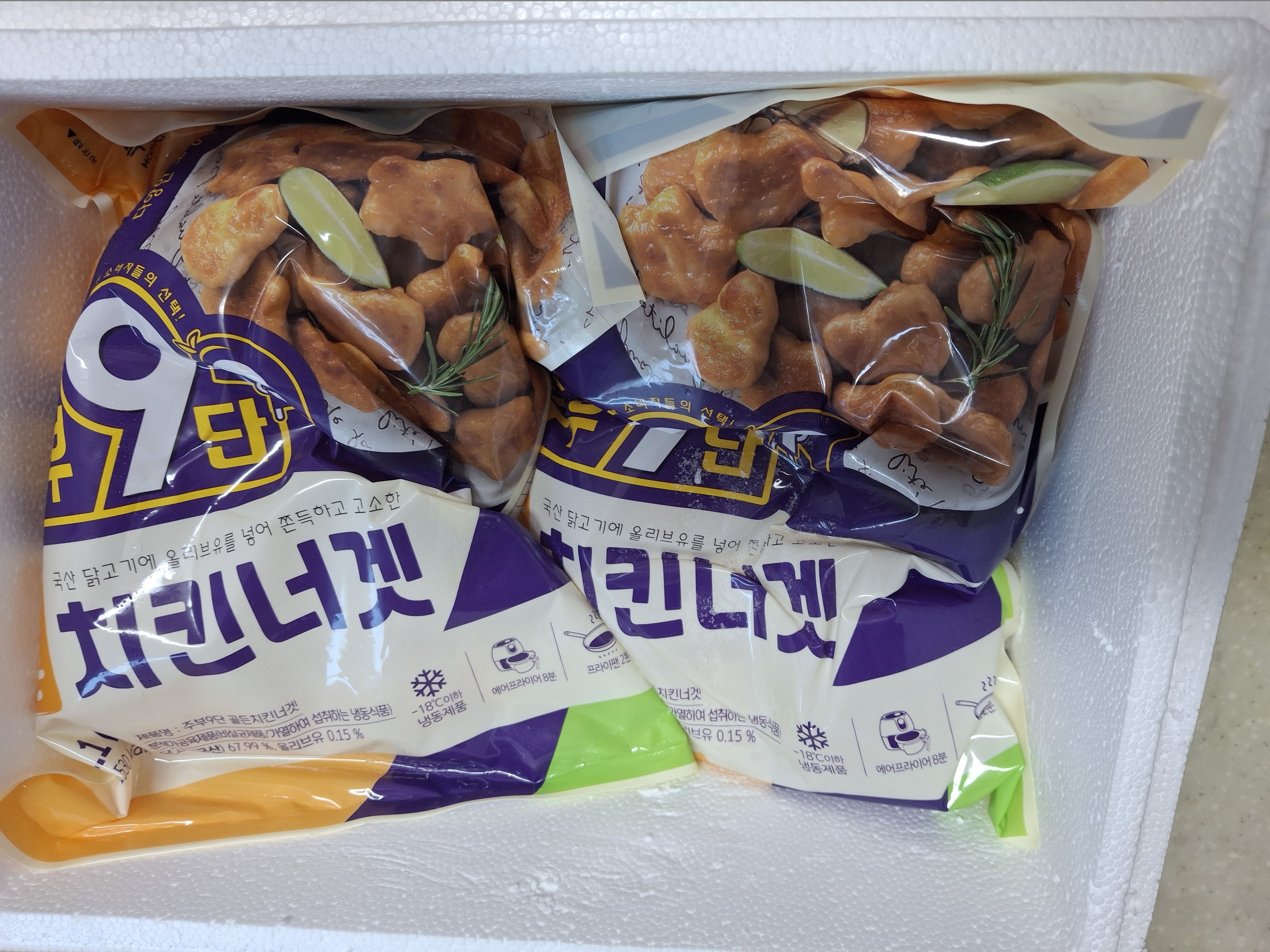 포장상태 정말 좋습니다.겨울날씨인데도 치킨너겟이 변질되지 않도록 아이스박스에 넣고 아이스팩을 추가하여 제품을 배송하여 줍니다.역시 목우촌은 신뢰감 있는 브랜드 입니다.사소한거 하나가 소비자는 감동하는 포인트입니다.이런 장점이 있기 때문에 목우촌이라는 브랜드 식품을 구매할때 고민이 덜합니다.
