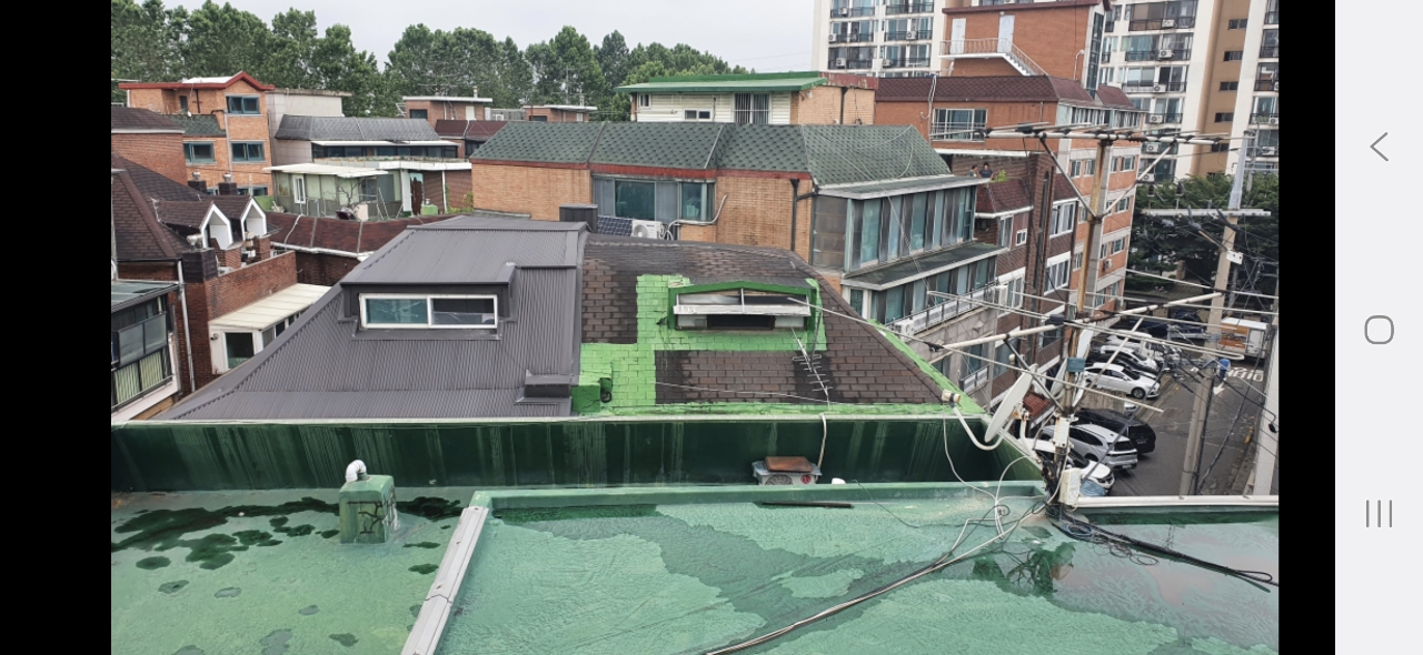 안녕하세요 금일 소개하여드릴 현장은 송파구 잠실동에 위치한 빌라 주택입니다.비가 많이오면 누수가 발생하여 빌라 지붕의 절반 부분만 칼라강판 시공을 타업체에서 진행하셨던 현장입니다.지붕공사를 새롭게 진행하실때 지붕전체에 칼라강판을 설치 않으시고 절반만 시공하셨는데 그 이유는 입주민들간의 협의가 안되서 그런것입니다.빌라 및 다세대주택에서 많이 발생하는 문제입니다.빌라 같은 경우 공용면적인 지붕에서 문제가 발생시 1/N로 나누어서 공사금액을 마련하고 작업을 진행하는것이 맞는 선택입니다.위와같이 진행하셔야 차후 법적인문제까지 번지는 일이 발생하지 않습니다.