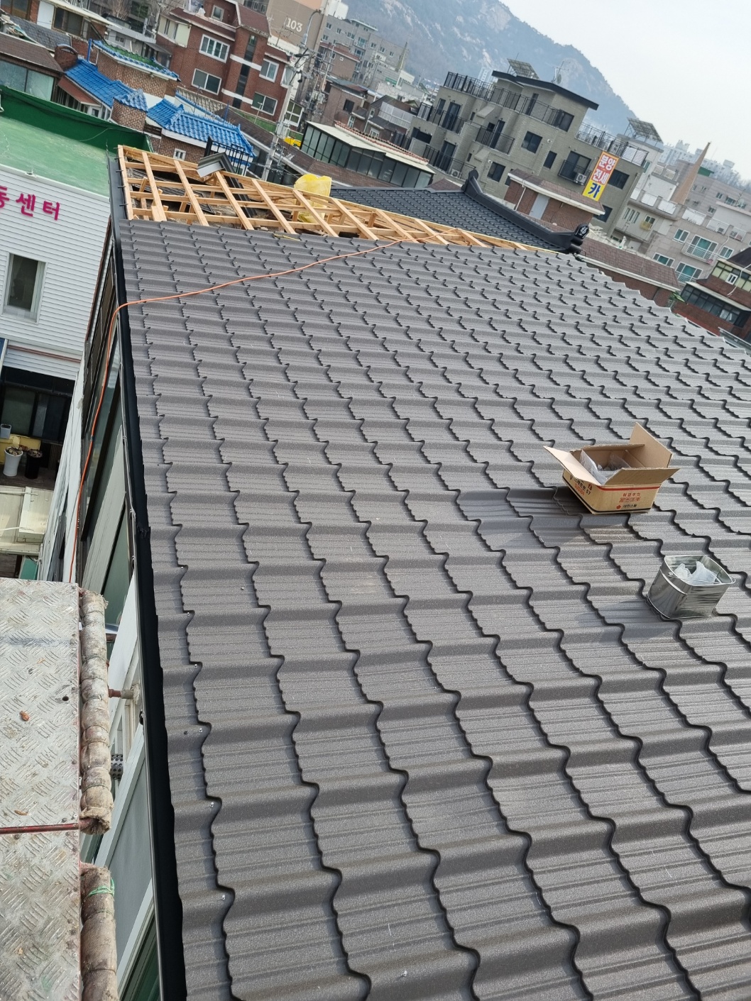 칼라강판 지붕공사는 건물의 외관이 변하여